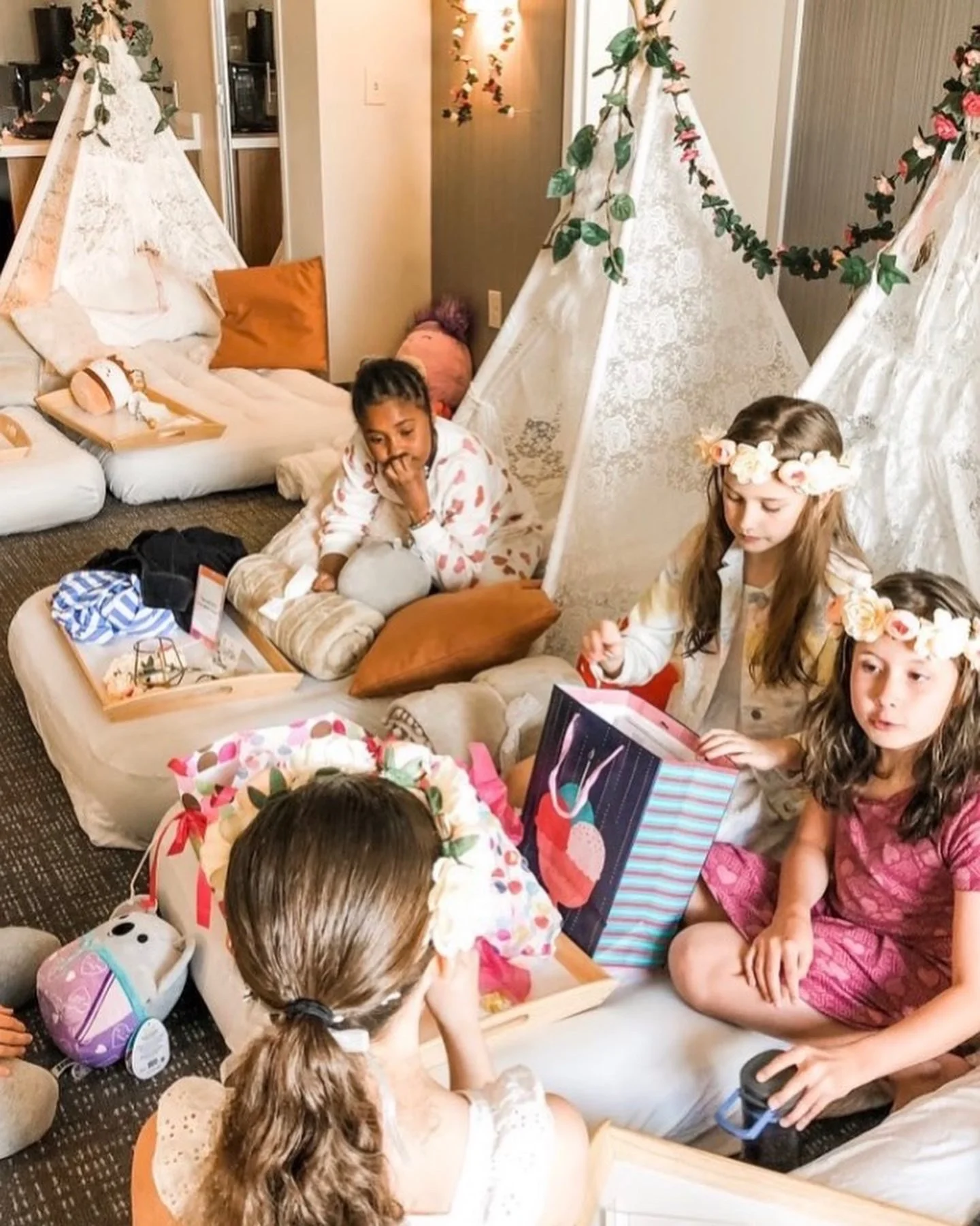 #1. Set a Date, Make a Guest List, and Set Times. If you are using a company like Sweet Dream Sleepovers, you may want to pick 2 possible dates as they tend to fill up quickly. When making the guest list, make sure to only invite the number of kids you are comfortable having sleeping in your home. Drop off and pick up times are a must! We have found parties usually work best if the kids arrive between 5pm-7pm, and picked up before 11am